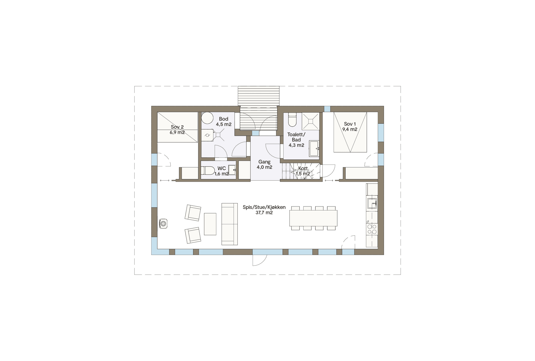 En klassisk Vy hytte med romslig hems over hele lengden av hytta. Lillebror til Vy 23 ATH, men svært innholdsrik.
