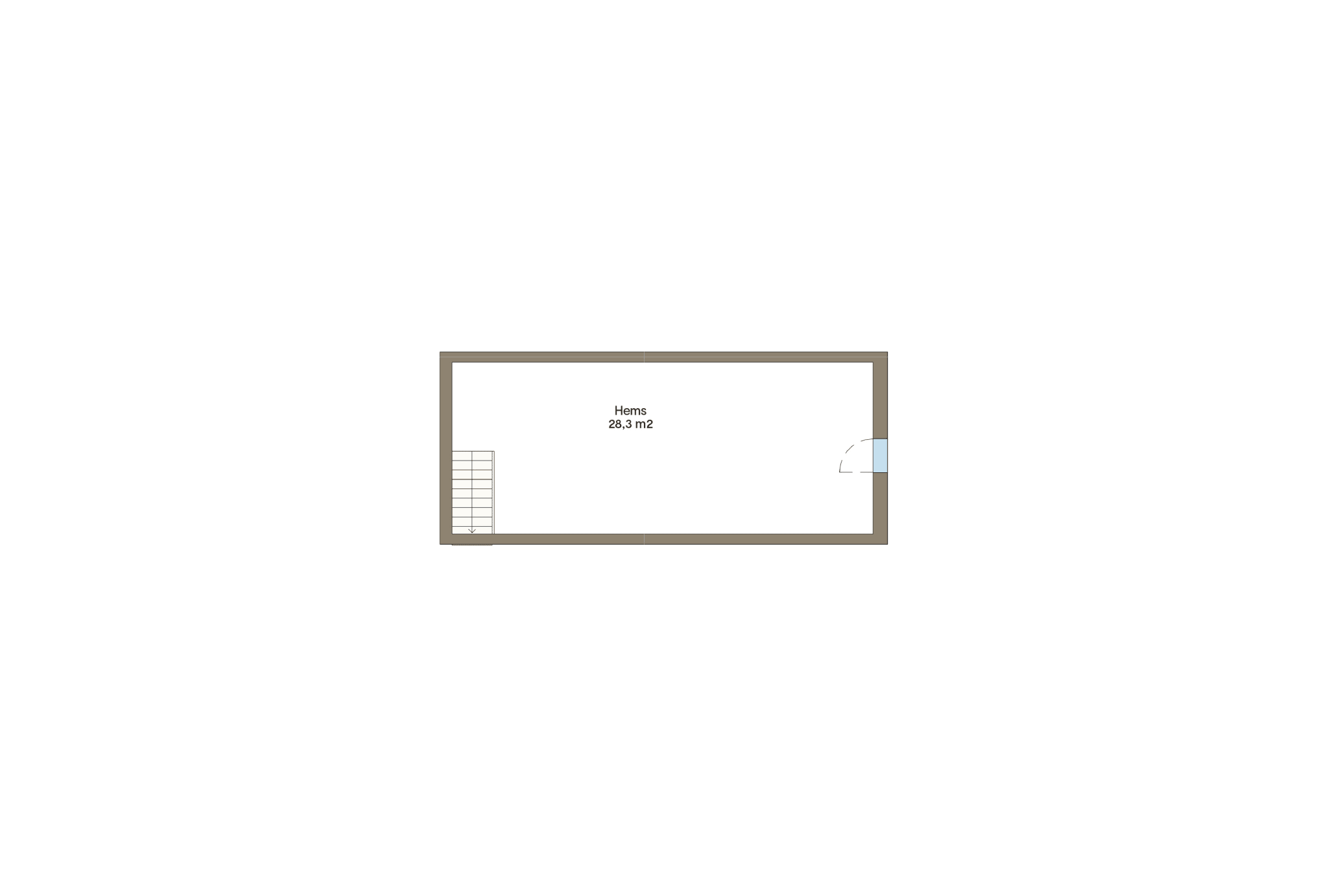 En klassisk Vy hytte med romslig hems over hele lengden av hytta.