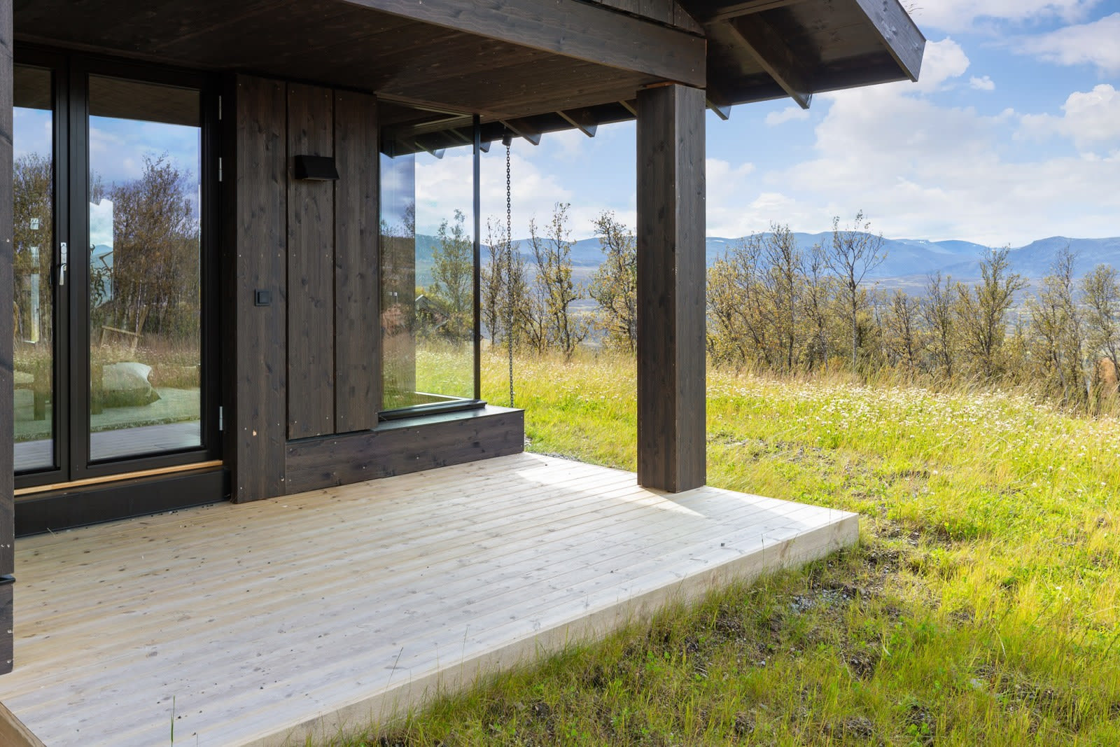 Vi har nå 5 flotte Nordlyshytter klare på feltet – med oppgraderinger og store verandaer perfekt for late sommerdager på Sørlandet.